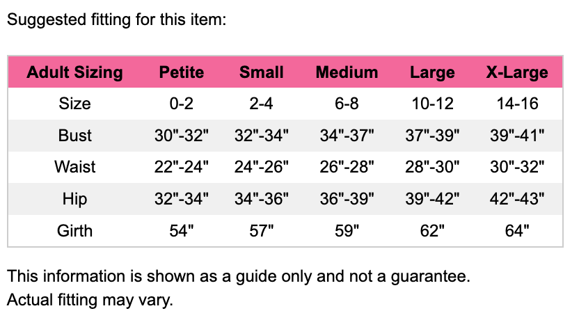 (adult) P, S, M, L, XL